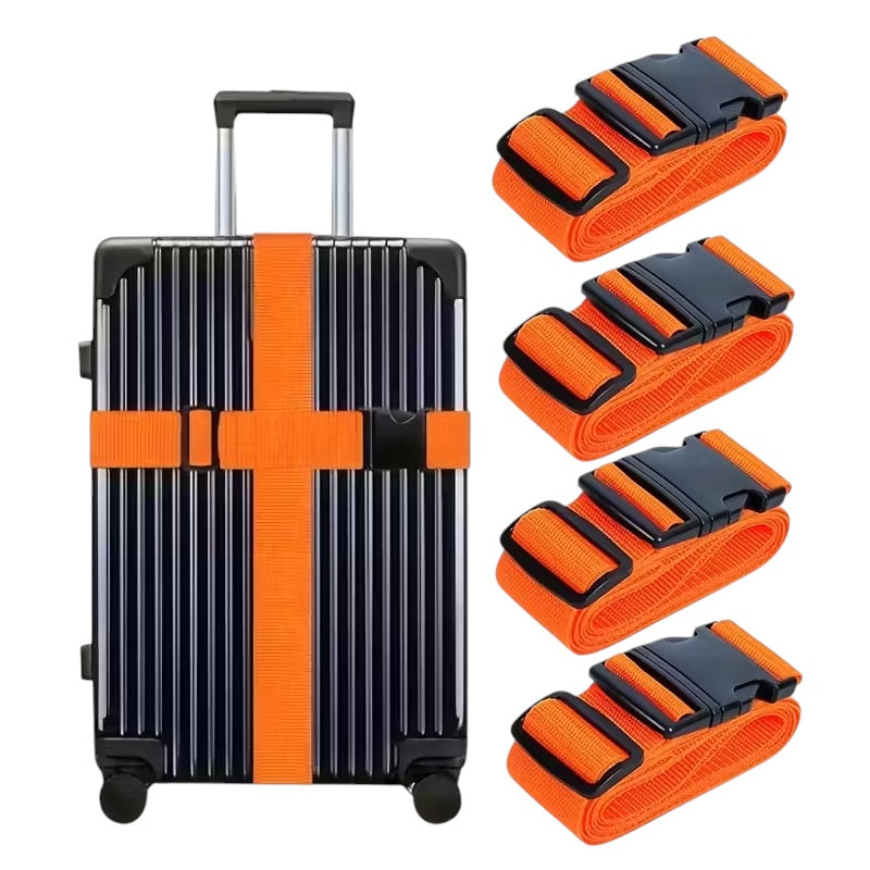 4-Pack Adjustable Luggage Straps – Durable Travel Suitcase Belts with Secure Buckle Closure (Available in Black, Red, Green, Orange & Blue)