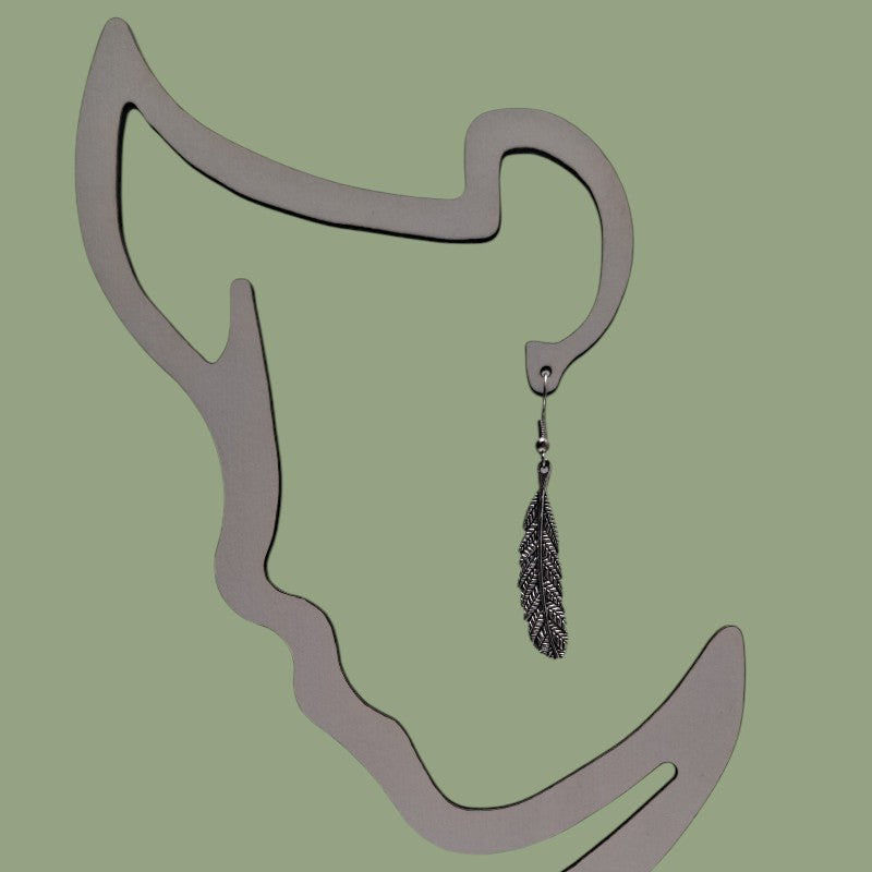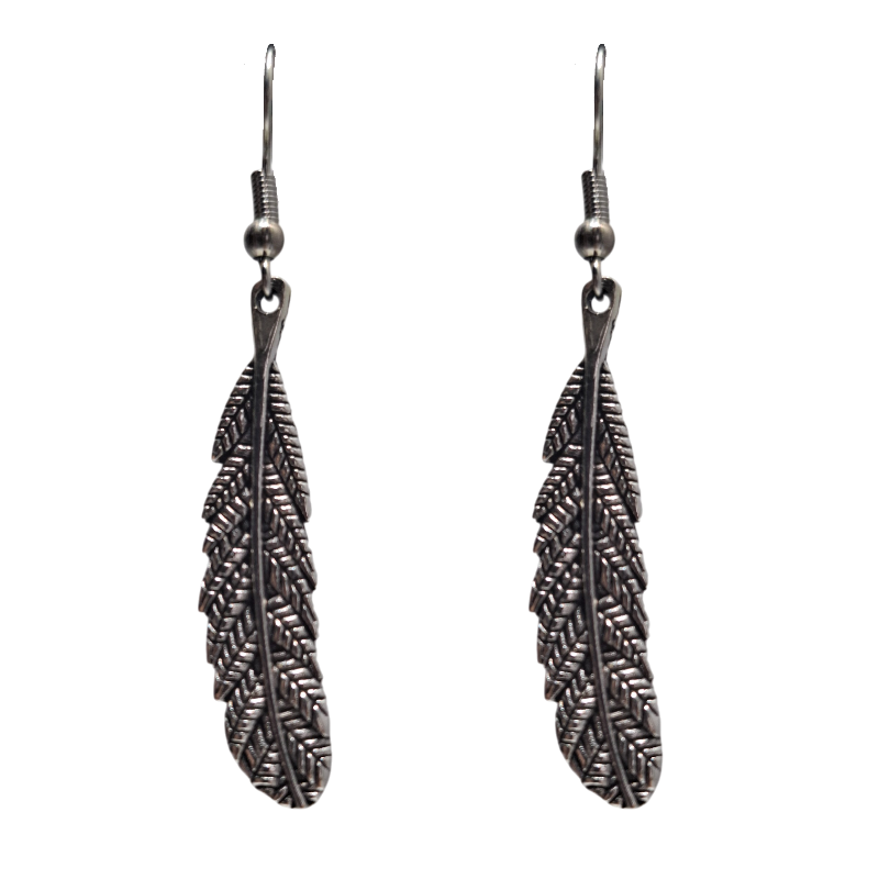 Vintage Feather Dangle Earrings – Bohemian Antique Silver Drop Jewelry for Women